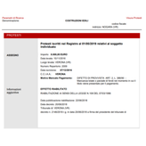 Nella visura vengono indicati importo, data di apertura e di scadenza, luogo di apertura oltre alla Camera di Commercio nella quale la persona o azienda è registrata.